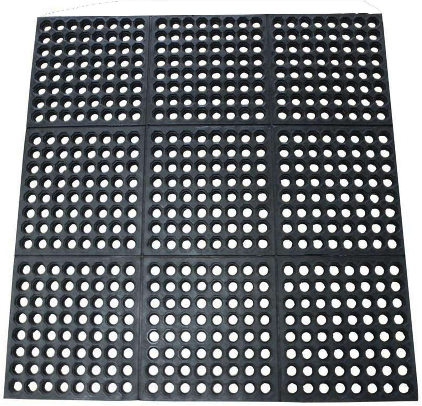 Heavy-duty rubber anti-fatigue matting with drainage holes, ideal for restaurant kitchens, industrial floors, and wet areas.